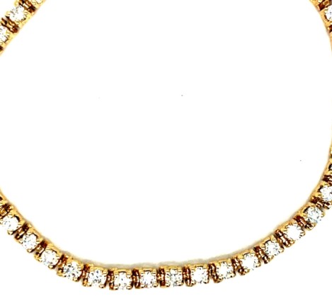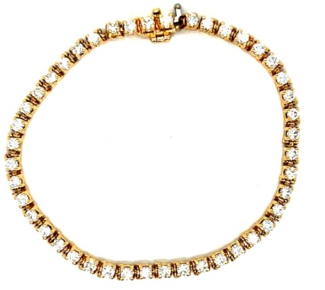 Elegant 14k yellow gold line bracelet measuring 7" long, featuring 44 round brilliant-cut diamonds totaling approx.
