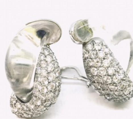Seaman Schepps "Half Link" 18K White Gold Rock Crystal & Diamond Earclips