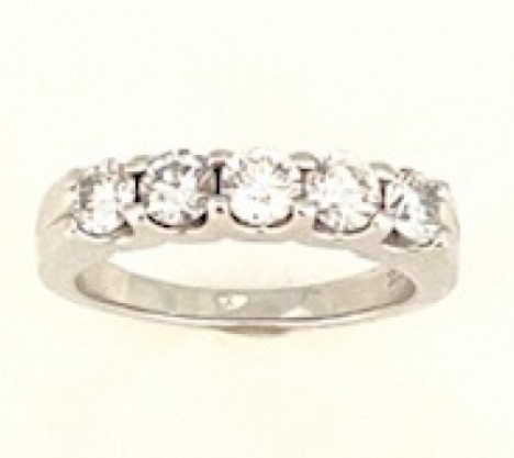 Traditional 14k white gold 5 Stone Diamond Wedding Band will look great alone or coupled with an engagement ring.