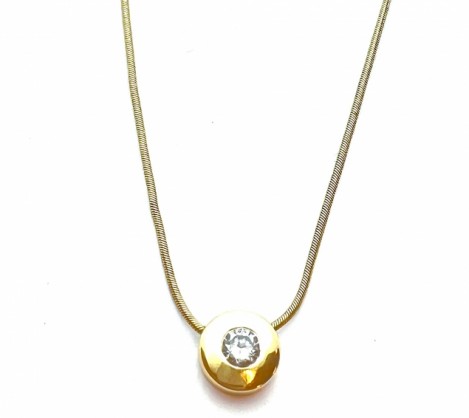 14K Yellow Gold Snake Chain with Diamond Donut Slide Pendant.