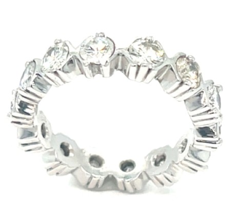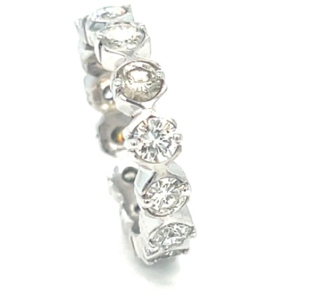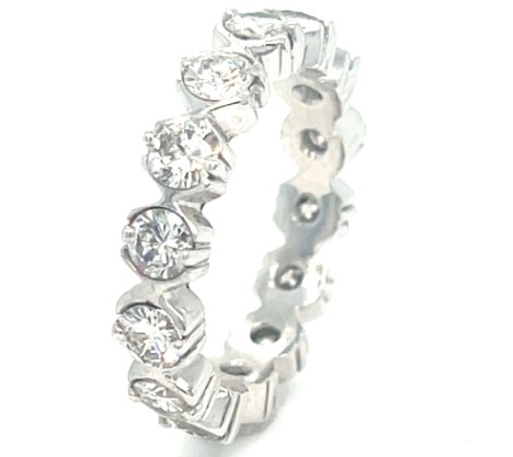 Platinum semi-channel and two-prong set diamond eternity band, size 6 3/4, featuring 15 round brilliant-cut diamonds