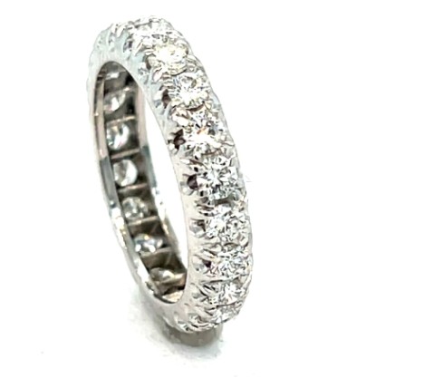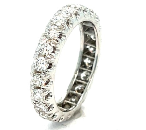 Classic estate platinum diamond eternity band, measuring size 5½ with a 4mm width.