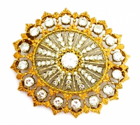 From an East Hampton, Long Island estate: 18K Buccellati Diamond Brooch contains 1 brilliant cut diamond wieghing .59ct and 78 round