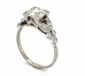Embrace the elegance of the Art Deco era with this pretty Platinum Diamond Engagement Ring. The centerpiece of this ring is an old european cut diamond, weighing approx. 1.20 cts, and of H/VS2 quality. It is meticulously set in a 4-prong miracle setting, showcasing the diamond's brilliance and radiance.