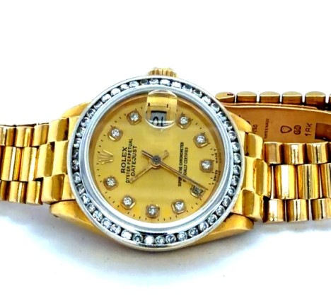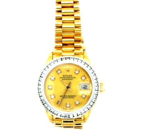Special Rolex Lady-Datejust President in 18K yellow gold with a diamond-set bezel