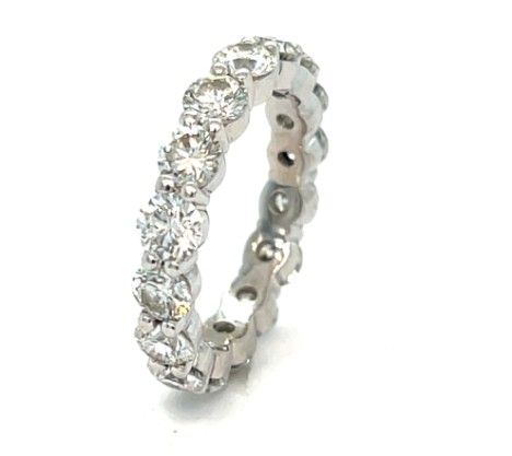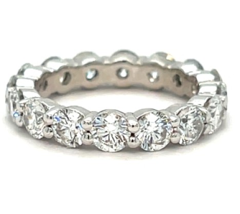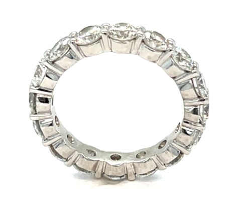 Elegant platinum shared-prong diamond eternity band, size 5½ with a 3.7mm width.
