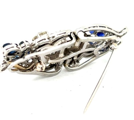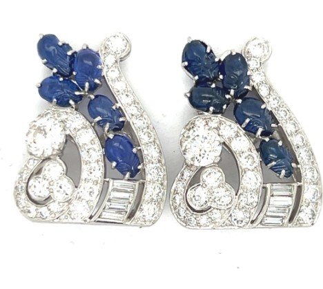 Bulgari Art Deco Platinum Diamond and Carved Sapphire Double Clip Brooch