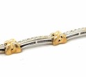 14k white and yellow gold "X" bar link diamond line bracelet. Measuring 7.5 inches in length and 3/16 inches in width.