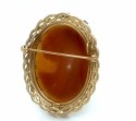 The cameo is secured by a yellow gold prong setting and the pin is secured by a 14k gold pin and swivel barrel clasp.
