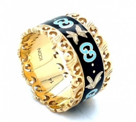and hallmarked "Gucci Made In Italy Icon AU 750". The enamel is in perfect condition.