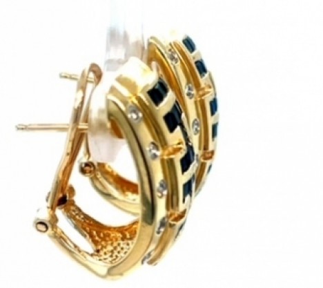 This sophicated pair of 14k yellow gold J-hoop earrings showcases 40 natural square-cut sapphires