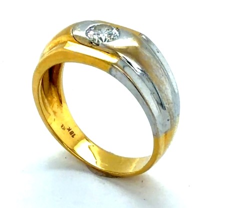 Gent’s Two-Tone Modernist 18K Gold Bezel-Set Diamond Solitaire Ring