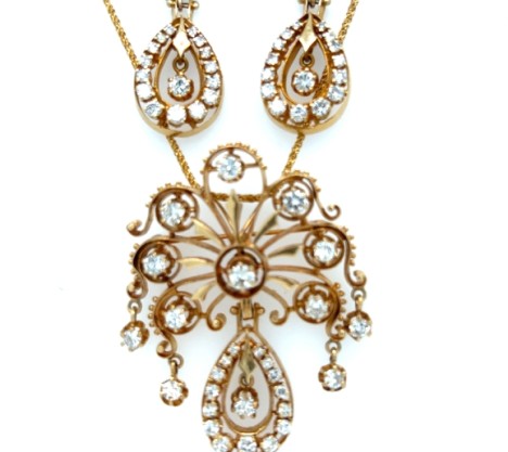 Pair of 14k Yellow Gold Diamond Teardrop Earrings,