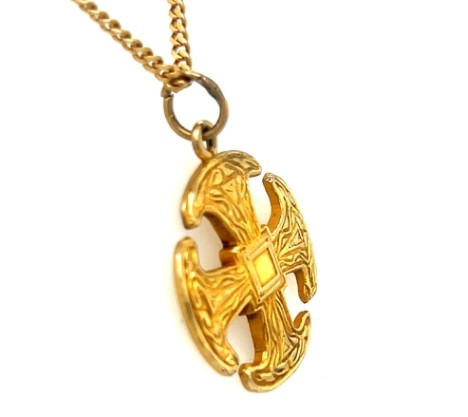 9k yellow gold Anglo-Saxon Canterbury cross pendant, authentically hallmarked,