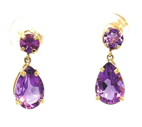 14K Yellow Gold Amethyst Teardrop Earrings