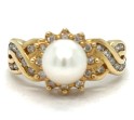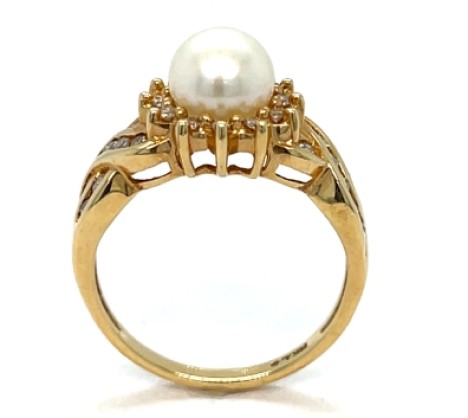 14K Yellow Gold Pearl and Diamond Cocktail Ring