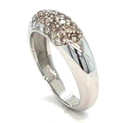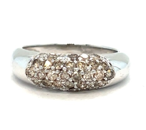 Stylish 14k white gold pavé diamond band, size 6, featuring a graduated shank measuring