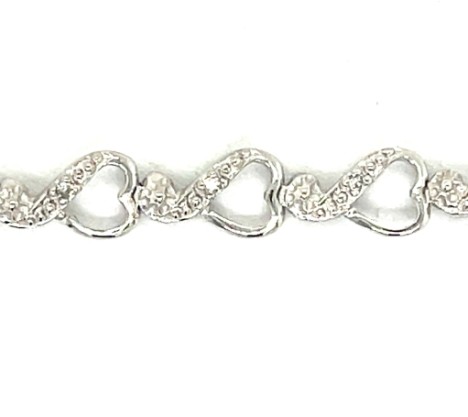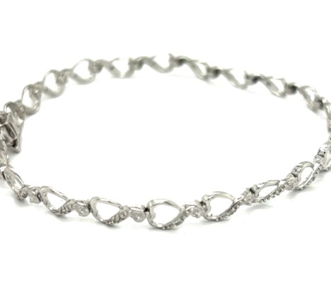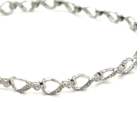 10k white gold heart link bracelet, 7¼" in length and ¼" in width, set with 22 single-cut diamonds