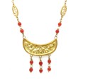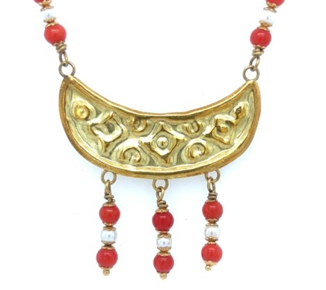 18k Yellow Gold Red Coral and Seed Pearl Necklace