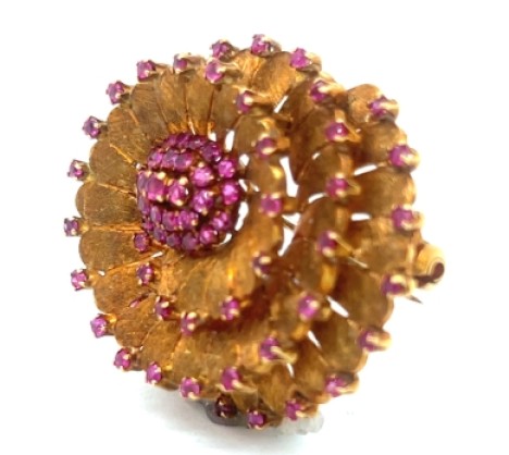 Vintage Italian 18k Yellow Gold Ruby Swirl Pin