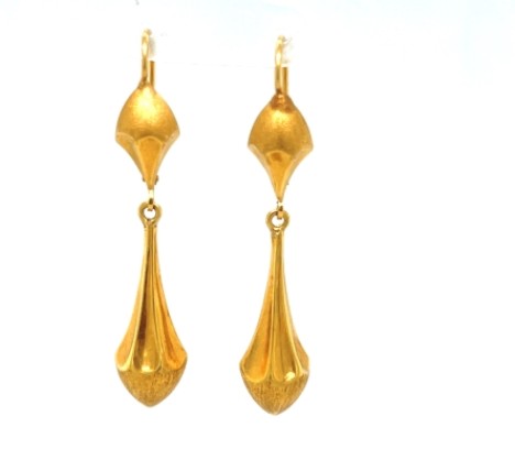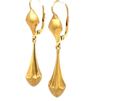 modern design. The earrings are fitted with hinged lever backs and friction posts for secure and comfortable wear.