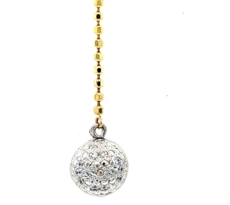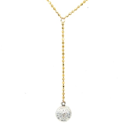 14k Yellow Gold & White Gold Diamond Pave Ball and Virgin Mary Pendant Necklace