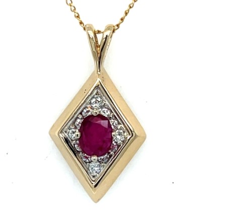 14k Yellow Gold Ruby and Diamond Pendant