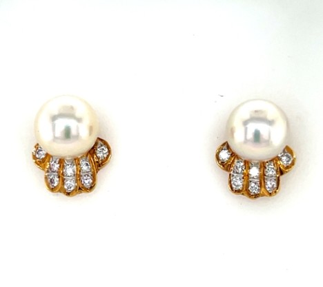 Elegant 18k yellow gold earrings featuring two fine-quality Akoya pearls, each measuring approx.