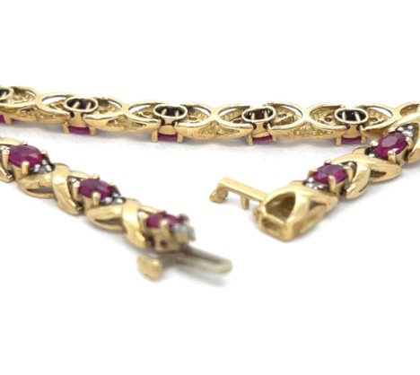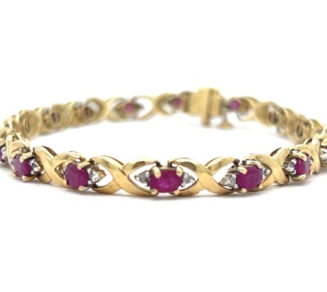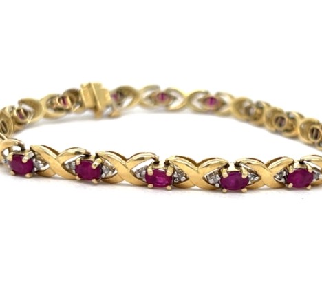 14k Yellow Gold Ruby and Diamond “X” Link Bracelet