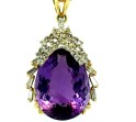 Impressive 14k yellow gold pendant featuring a large pear-shaped amethyst of medium purple color,