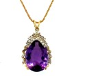 14k Yellow Gold Amethyst and Diamond Teardrop Pendant