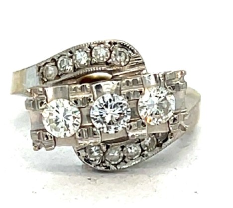 Charming 1950s cocktail ring crafted in 14k white gold with a 2mm gradually tapered shank,