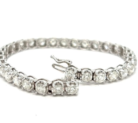 Impressive 14k white gold diamond line bracelet, measuring 7 3/8" long, featuring