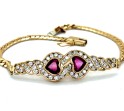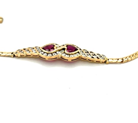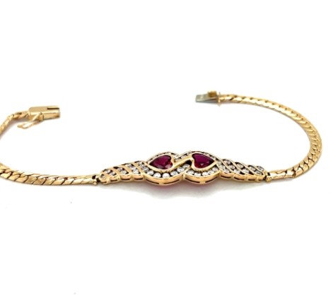 14k Yellow Gold Curb Link Diamond and Ruby Heart Bracelet