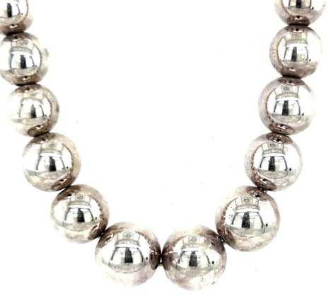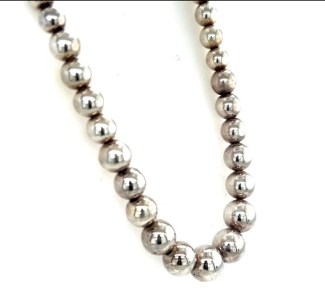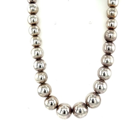 Tiffany & Co. Silver Graduated Bead Necklace measures 16" length + lobster clasp.