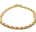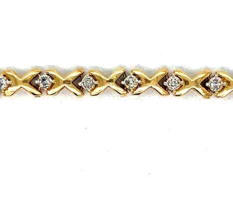 14k yellow gold “X” link diamond bracelet measuring 7 1/2" long and 3/16" wide, set with