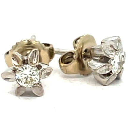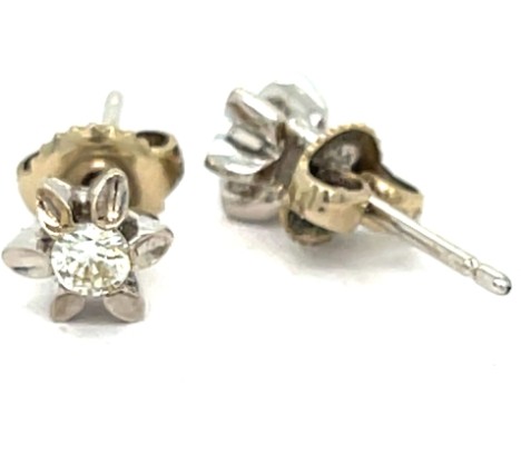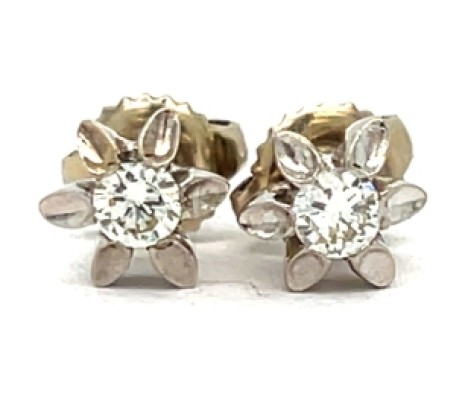 Vintage pair of 14k white gold six-prong flower-motif diamond stud earrings,