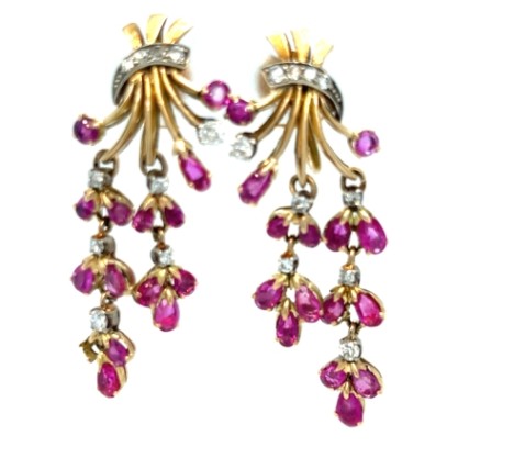 14k Rose Gold and White Gold Ruby and Diamond Bushel Earrings