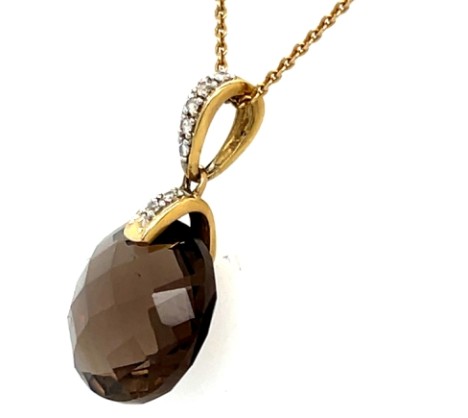 14k Yellow Gold Smoky Topaz and Diamond Pendant Necklace