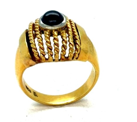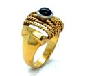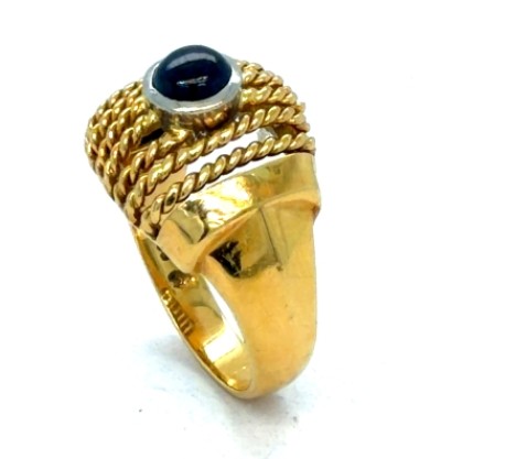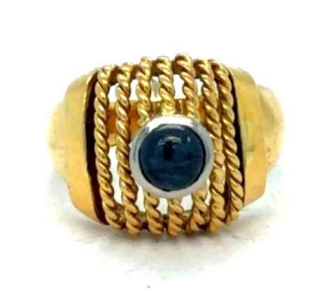 18K Yellow Gold Cabochon Sapphire Rope Braid Ring