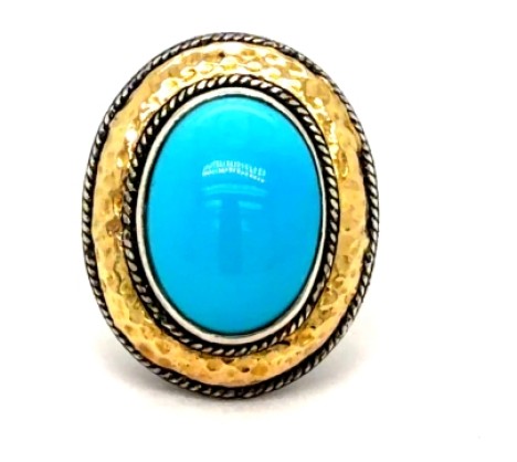 16 × 13 mm and weighing an estimated 10.00 cts. The turquoise displays rich color and is beautifully complemented