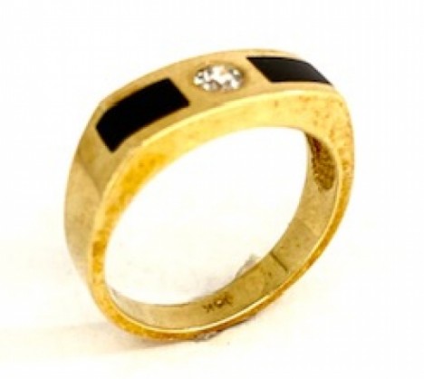 Uni-sex Yellow Gold Band Ring made in 14K with 2 pieces of inlaid onyx.