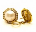 Very pretty tailored design 14K Yellow Gold Octogonal Mabe Pearl & Diamond Earrings.