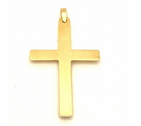Unisex cross with a shiny finish. Yellow Gold chain available upon request.