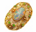 Open Work 18K Yellow Gold Oval Pin. One bezel set large opal 23mm x 13mm decorates