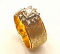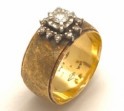 14K Yellow Gold Florentine Finished Wide Diamond Cocktail Ring. Ring has 1 center round