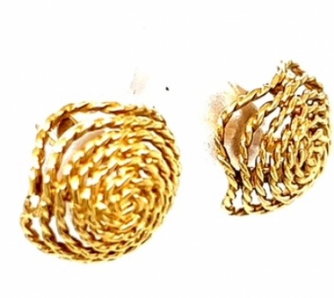 14K Yellow Gold Openwork Rope Style Domed Ear Studs.