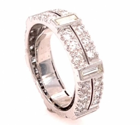Contains 6 bezel set straight baguettes weighing approx. 1.25cts., with 36 round brilliant prong set