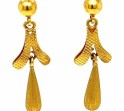 18K Yellow Gold signed Italy, Crisscross & Light Brushed Finish Drop Earrings.