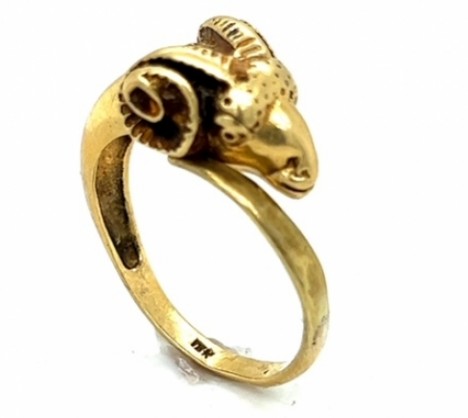 Introducing a piece of jewelry, behold the gentleman's 18k yellow gold ram's head ring. This remarkable ring is designed to make a bold statement, exuding strength and character. The ring is sized at 11 1/2, ensuring a comfortable fit for the wearer.